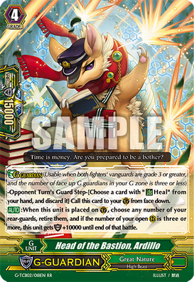 With the support of G Technical Booster 2: The GENIUS STRATEGY, many G units claim their space in your G Zone, Afanc is the perfect unit to deal with the retiring effect of our cards we can make a great combo using it with our stander units, talking about stand our next unit is the best restander in all GN, Sage-Saint Professor, Bigbelly can give huge power to one unit, also if the one unit chosen by this effect hits, you can stand the same number of unit as the face-up cards in G Zone and at last we have Ardillo this unit is perfect when our field is open, this unit can get itself shield+10k  if you have at least 3 open RG but don’t worry you can retire your own reaguard with its effect.