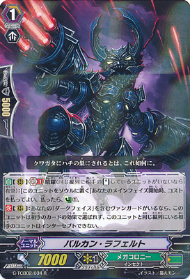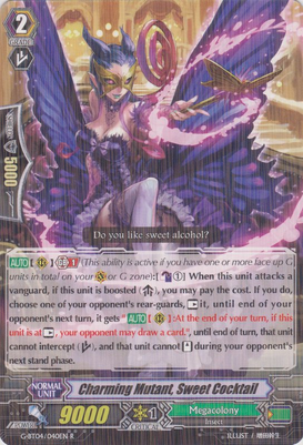 With the support of G Technical Booster 2: The GENIUS STRATEGY, Megacolony G zone  went from being good to be incredible, first you have Obtirandrus a unit that prevent you opponent to card units from hand and even superior calls, besides we have now the evolution of our G3 Darkface, Merciless Mutant Deity, Darkface a unit that solve the problem of intercepting or rearguard been chosen by effects, this unit also gets power for each unit chosen by this effect and at last, the new G guardian Gricefort this unit gets shield 5k for every 2 rest unit and also rest your opponent’s backrow.