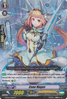 Magus have a good amount of units, Crescent Magus for a simple check each turns, Cone Magus for countercharge and for a good defense we have Octagon Magus this unit gets shield +10k, if we predict the top card of our deck while this unit is on Guard Circle. Ripis Magus is our 10k attacker.