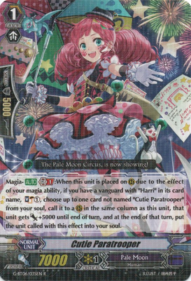 using it make filling the field easier than ever.Pale Moon have a good sort of good Grade 1 unit but Cutie Paratrooper is the most notable unit, with the Magia ability to call a unit with +5k power make it the best. Also Intense Sweet Clown is good for agresive attacks.