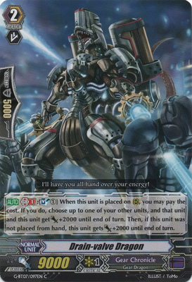 unit gets power +2k each time a unit is placed by time leap, Drain-valve Dragon is also a good unit