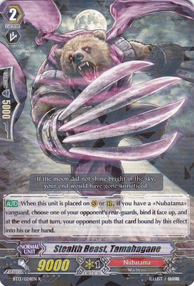 Tamahagane is the engine, binding opponent’s rearguards and Stealth Rogue Of Night Fog, Agitomaru to send cards to the drop