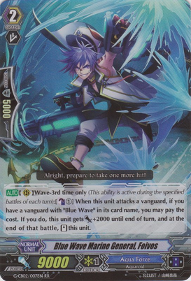 BlueWave Valiant General, Artiom a “Blue Wave” special G-unit, that gives [Power]+3000 to all your attacking “Blue Wave”