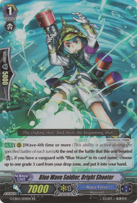 have two cards with Blue Wave on your Vanguard (Hearts also count) and Blue Wave Soldier, Bright Shooter to