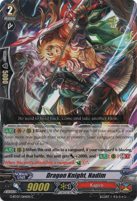 for each of your opponent’s open rearguard and also let you to draw a card, Dragon Knight, Nadim is a unit with
